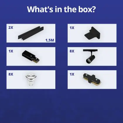 | Herstellername | Complete Straight 3-meter 1-Phase Track Set Black incl. 8x Spot fixture + GU10 2700K 3W Dim – 2x 1.5 | |