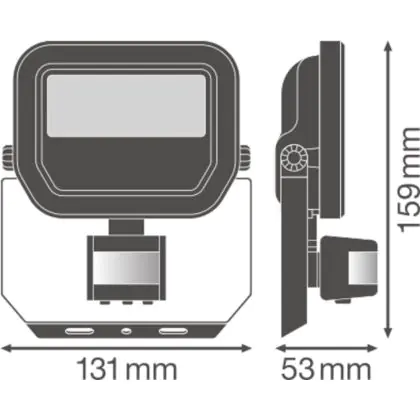 Der Ledvance LED-Scheinwerfer 10W 4000K 1200lm IP65 ist in stilvollem Schwarz gehalten und zeichnet sich durch seinen Abstrahlwinkel von 100°x100° aus. Dank der hohen Robustheit kann die Leuchte problemlos in Außenbereichen eingesetzt werden. Ein besonderes Merkmal des Fluters ist sein Sensor. Der Erfassungswinkel des Bewegunssensors beträgt 40°-60°.