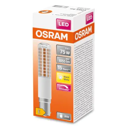 Osram Special T Slim LED B15d Klar 9W 1055lm - 827 Extra Warmweiß | Dimmbar - Ersatz für 75W