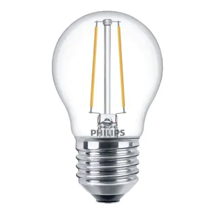 Die Philips Classic LEDlustre E27 ist eine LED-Lampe mit einem gängigen E27-Sockel und eine P45-Form. Sie ist sparsam im Verbrauch und ermöglicht Energieeinsparungen von fast 90%. Darüber hinaus strahlt sie Licht in der Farbtemperatur extra Warmweiß aus, ist dimmbar und besitzt eine lange Lebensdauer von 15.000 Stunden.