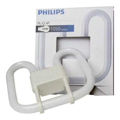 Philips PL-Q 4P -Lampen sind Leuchtstofflampen vom Typ 2D, sie sind sehr energieeffizient und besitzen eine quadratische Form. Die Philips PL-Q 4P ist kompatibel mit konventionellen Vorschaltgeräten. Philips PL-Q 16W 835 4P sind mit einem GR10q Sockel-Typ und 4 Pins ausgestattet. Die Größe beträgte 141mm.