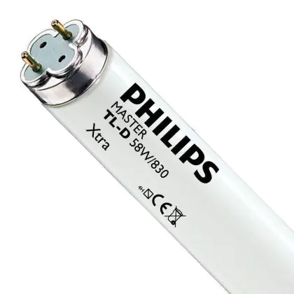 Philips TL-D Xtra sind Leuchtstoffröhren mit einem Durchmesser von 150cm. Diese Lampen haben eine sehr lange Lebensdauer von durchschnittlich 36.000 Stunden und sind sehr zuverlässig. Mit ihrem G13 Lampensockel und einer Länge von 150cm sind sie einfach in die passenden Leuchten zu installieren.