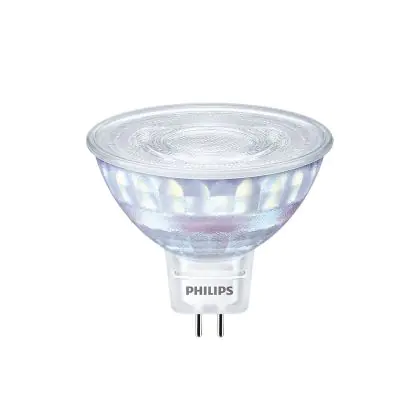 Der Philips LED-Spot GU5.3 7W 827 36D 621lm | Dimmbar überzeugt als Alternative zu 50 W Lampen mit 85 % Energieeinsparung, einer hohen Farbwiedergabestufe und mit einer extra warmweißen Farbtemperatur. Durch die geringen Wartungs- und Ersatzkosten erfolgt eine Amortisation während der Garantielaufzeit.