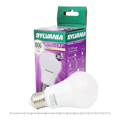Die Sylvania ToLEDo GLS E27 ersetzt traditionelle Leuchtmittel von 60W, ist dabei aber wesentlich effiziente im Verbrauch mit nur 8,5 W. Darüber hinaus besitzt sie eine extra warmweiße Farbtemperatur und sorgt damit für eine entspannte Atmosphäre.